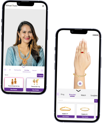 From the jewelry industry, eyewear, cosmetics to the apparel industry, MirrAR Virtual Try-On can be tailored to virtually any product category, providing a personalized and engaging experience for your customers. Whether you are showcasing intricate jewelry pieces, stylish eyewear, premium cosmetics, wrist watches, or the latest fashion trends, our augmented reality (AR) technology ensures accurate and lifelike virtual try-ons. This not only enhances the shopping experience but also helps in building customer trust, reducing product returns, and boosting sales.